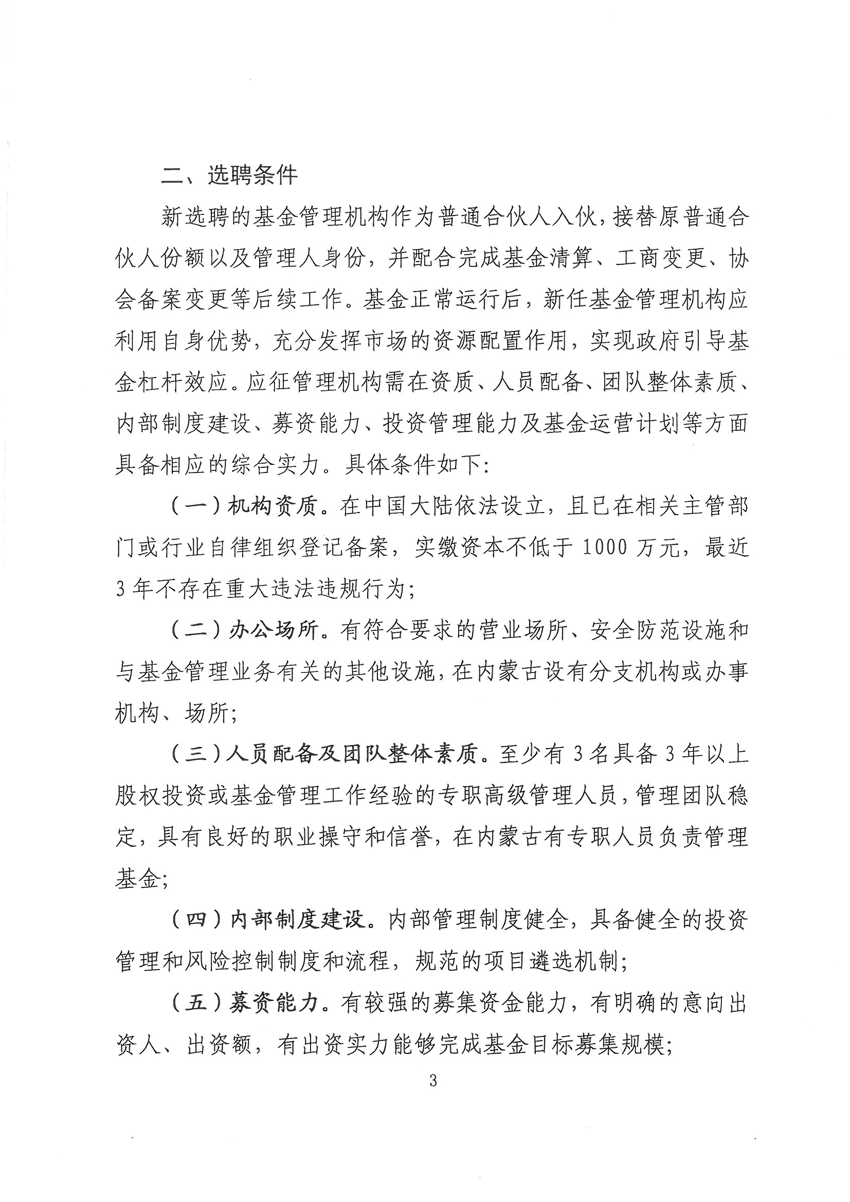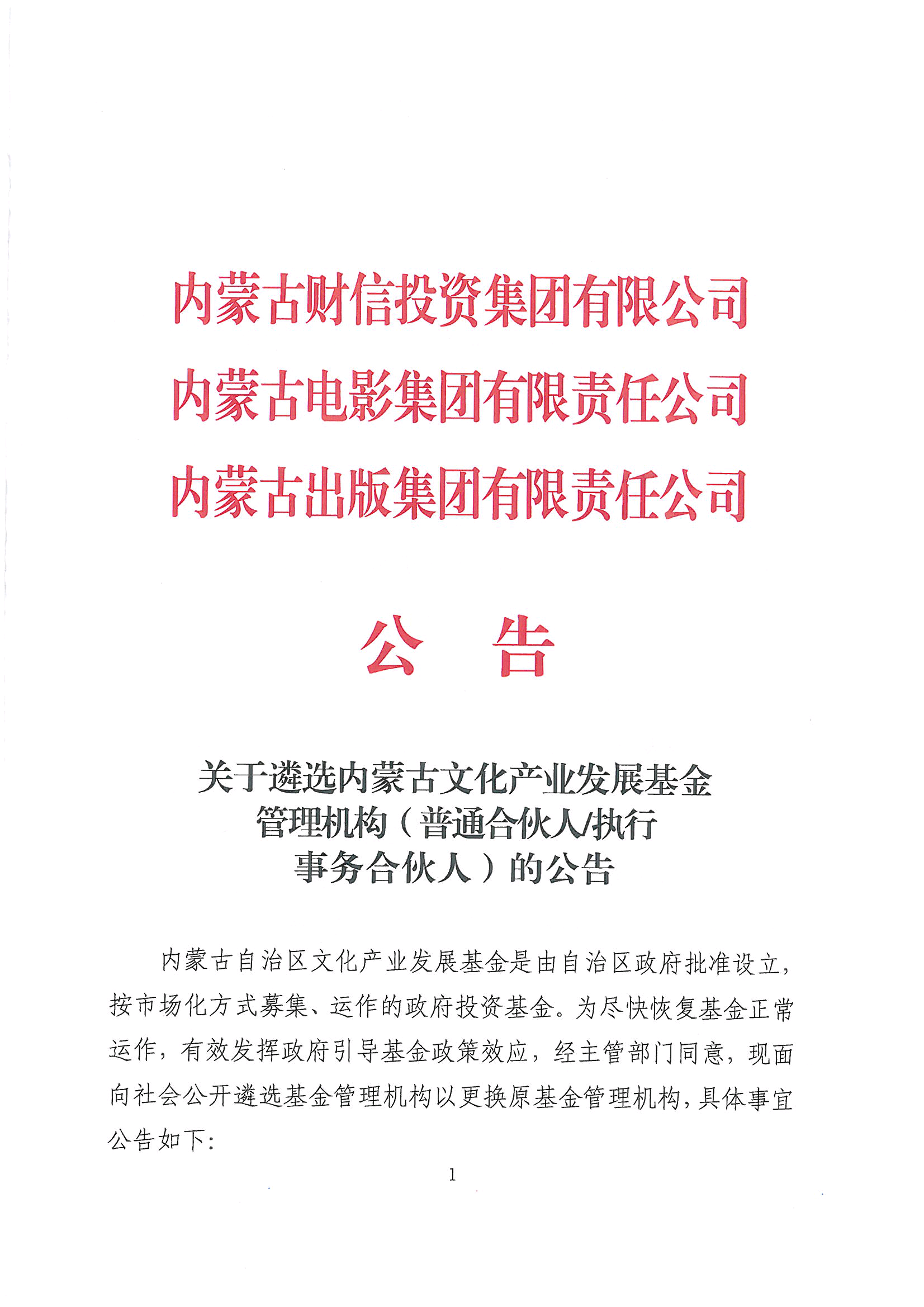 关于遴选内蒙古文化产业发展基金管理机构(普通合伙人/执行事务合伙人)的公告